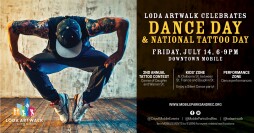 LODA ArtWalk celebrates Dance Day & National Tattoo Day on Friday, July 14th from 6 to 9 p.m. in Downtown Mobile! This event will highlight creatives within our community, including visual artists, musical performers, local restaurants, art galleries, small businesses, and more.